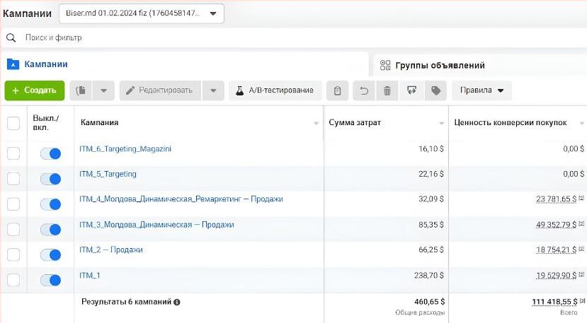 Period from March 1, 2024 to March 28, 2024, the service is dynamic advertising on Facebook and Instagram. Advertising takes into account only formalized sales on the website, orders by phone and attracted customers to the offline store are not counted in these statistics.